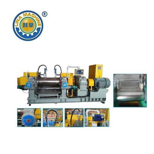 a typical two roll mill used in industries like rubber processing or plastics ma...
